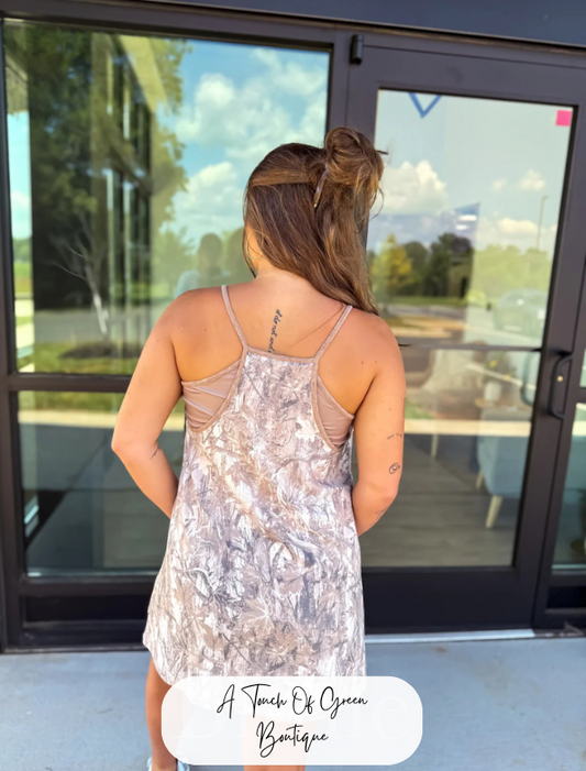 Dark Camo Tank Dress with Built in Bra