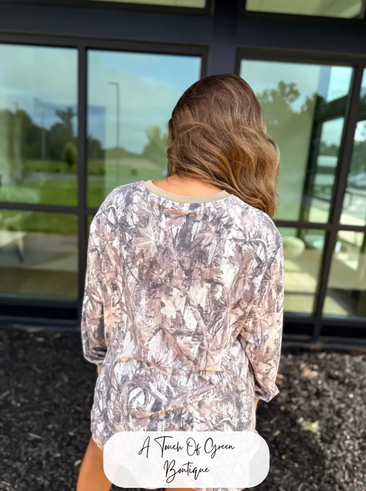 PREORDER Two Piece Camo Set with Long Sleeve Shirt & Shorts