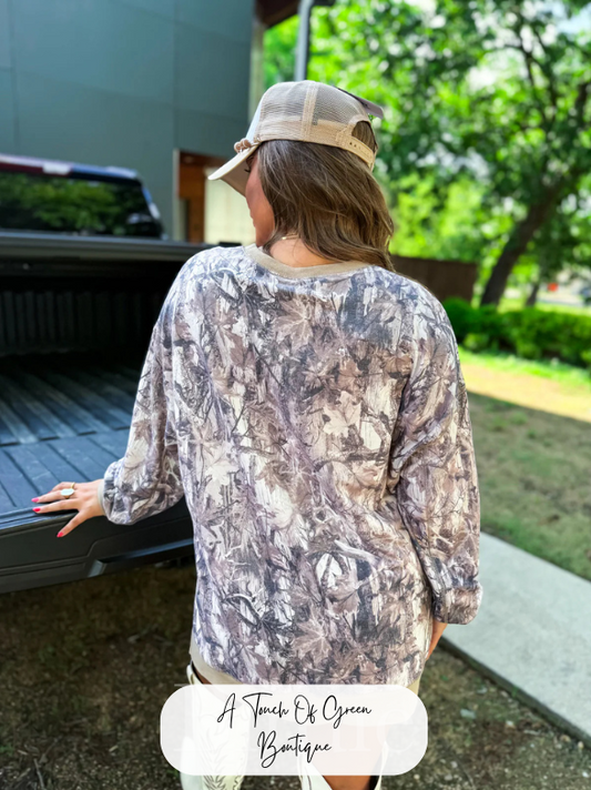 PREORDER Two Piece Camo Set with Long Sleeve Shirt & Shorts