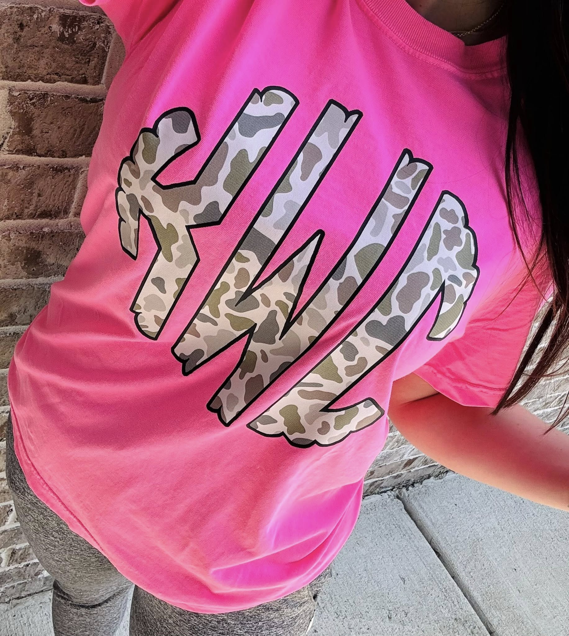 Camo Monogram Comfort Colors Graphic Tee-Pink