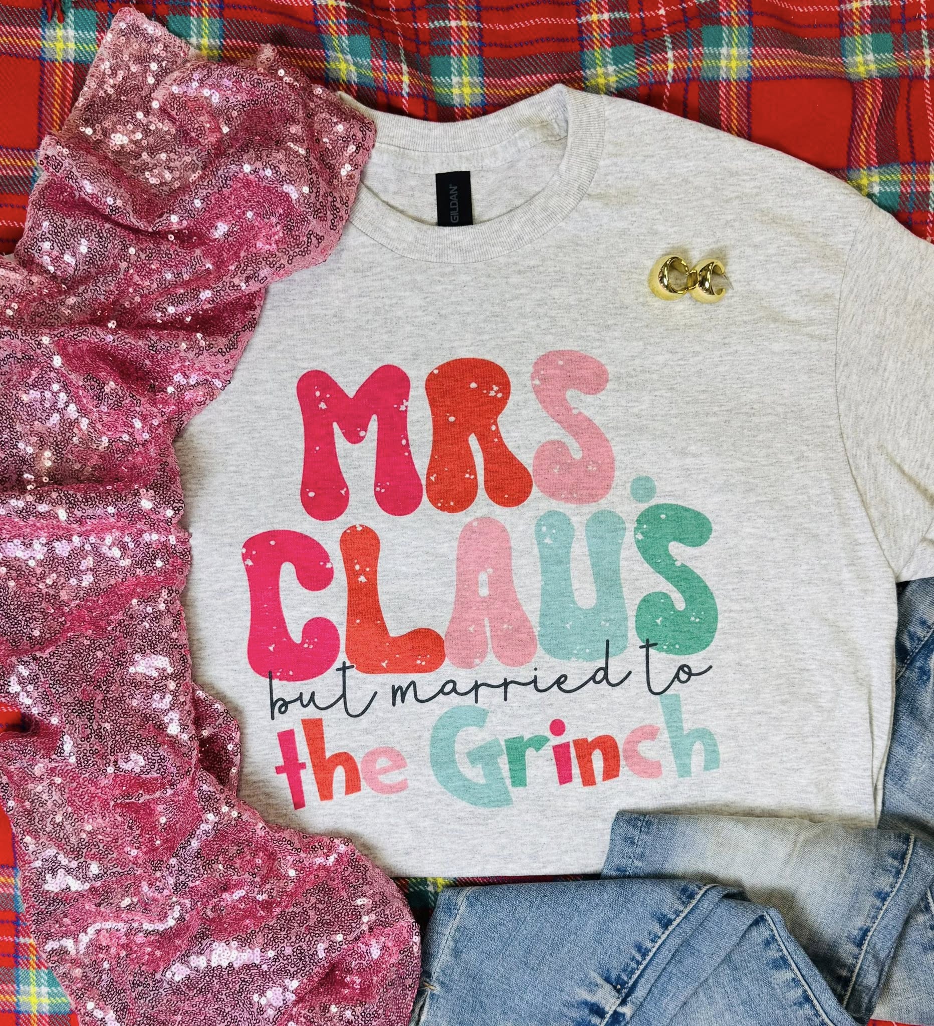 Mrs. Claus But Married To The Grinch Grey Tee